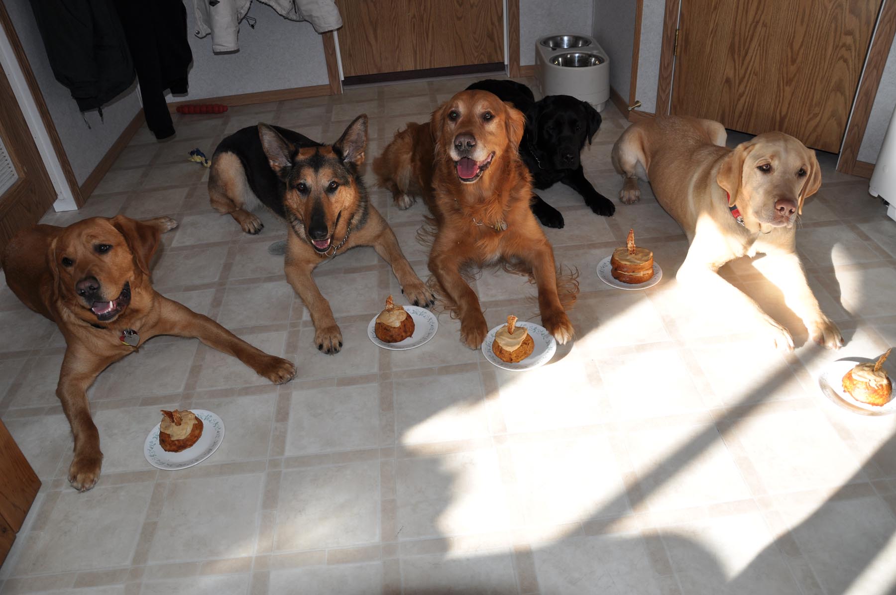 At the end, each dog got their own individual birthday cake.  Considering that we had 5 dogs together, 2 of which are intact males, the day could not have gone better.