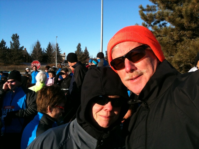 This morning Don and I joined a thousand or so other crazy people to walk 5 kms in the Brita Resolution race. It was a balmy -14C in Edmonton and I had on so many layers that I felt like the Michelin man. Despite the cold temps and the very ice-y trail, we finished in a respectable 46 minutes.