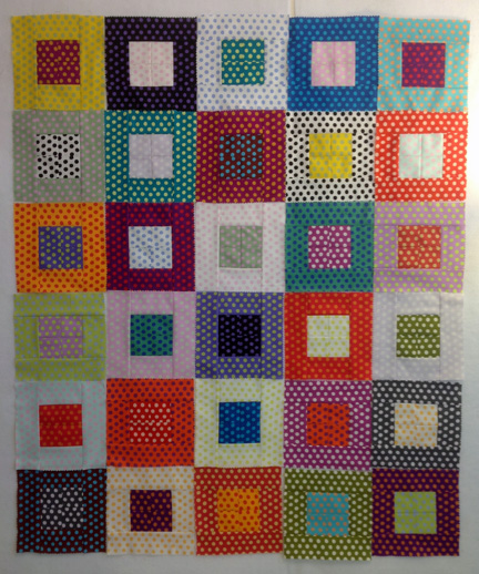 The husband of one of the Guild members travels regularly to Africa and got involved with a Orphanage in Ghana. Our Guild decided to make quilts for the children so that they would have something to call their own. I bought a brightly coloured jelly roll made up of polka-dot prints. I thought they would be perfect for a child and could be used for either a boy or a girl. I made these 30 blocks for the project. They will be combined with blocks made by other guild members and we will produce as many quilts as we can.
