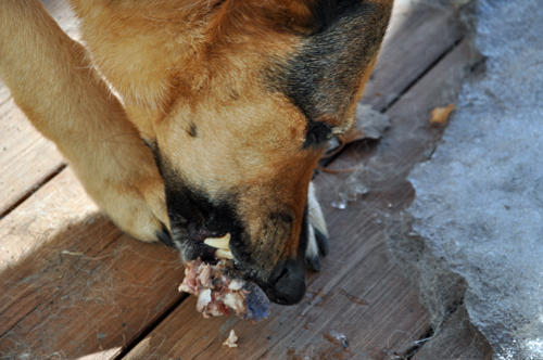 This morning we gave the ‘kids’ each a prime rib bone to enjoy on Easter Sunday…..better than chocolate eggs any day!!!
