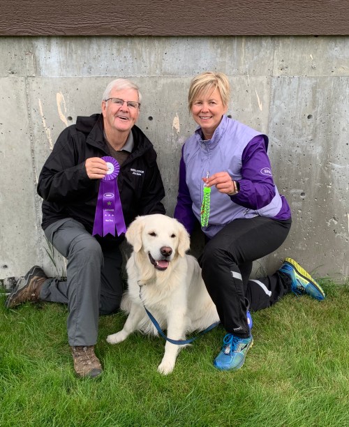 After Spirit’s emergency surgery on Tuesday, we never thought we would be going to Red Deer to compete in the Little Nose that Knows/Canine Coaching Sporting Detection trial. The Vet said we would be surprised at how quickly Spirit would recover but we never expected to be going to a scent trial 4 days after her surgery. We waited until 4:30am Saturday morning to make our final decision. Spirit was happily eating, peeing and pooping so we decided to go so that Brodie could play.