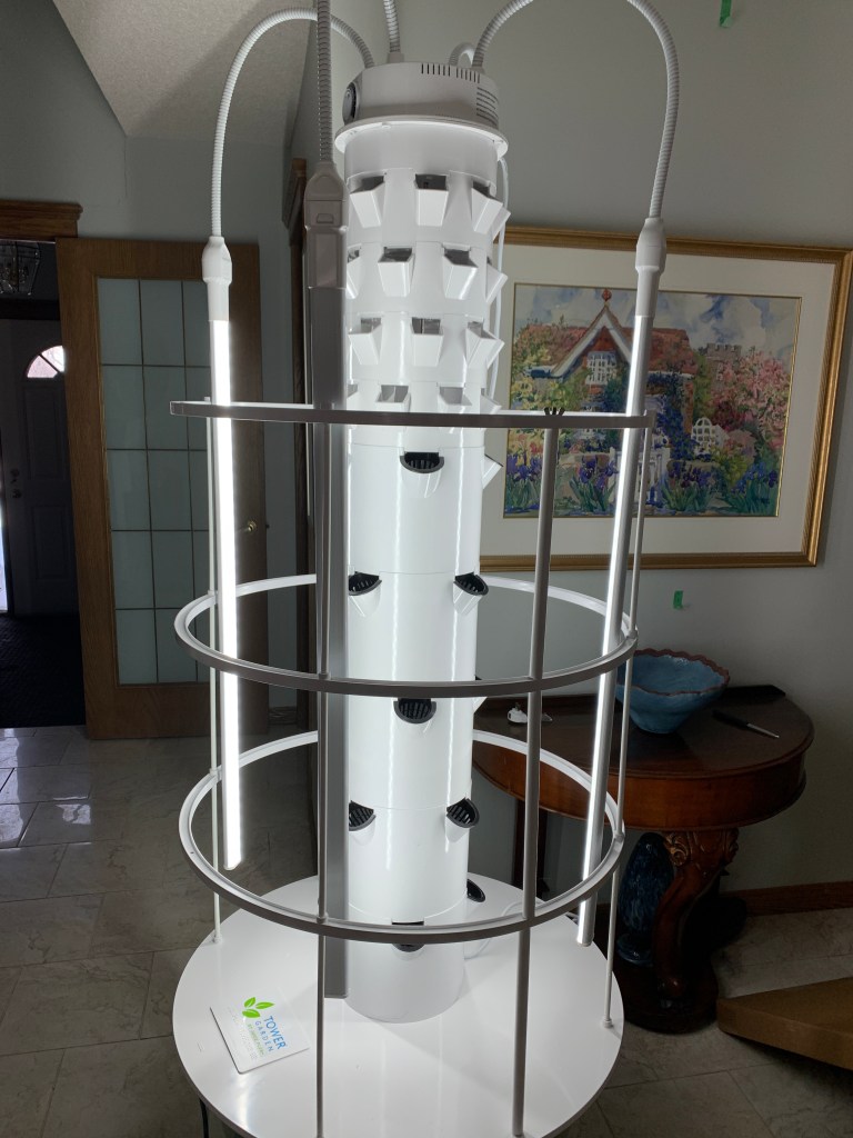 My new toy arrived last Friday. It is an aeroponic tower garden that can be used both indoors or outside. My gym has had a couple of them hanging around for a while and I instantly fell in love. I seeded a bunch of greens, chives, tomatoes and peppers Saturday morning. The first sprouts appeared in less than 48 hours. I can’t wait until they are big enough to be moved to the tower.