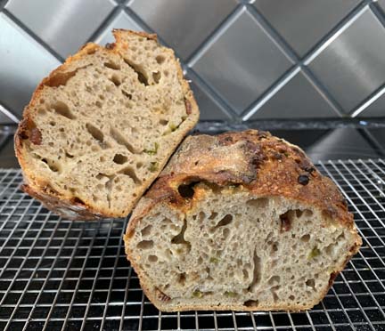 I wish I had smell-o-vision. The house smells absolutely amazing. Fresh out of the oven: a cinnamon raisin boule and 2 jalapeño, cheddar, roasted garlic and bacon 🥓 batards. Thank goodness I am giving some away because I don’t think I could be trusted not to eat them all immediately.