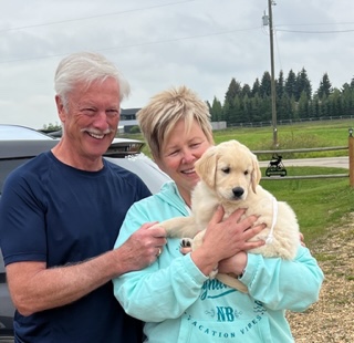 In our first 24 hours, I have learned that he is bold, fearless, and very confident. We can’t take our eye’s off of him for a millisecond or he will be climbing, scaling or investigating something. He is not your typical puppy piggy inhaling his food. He actually chews each piece. He slept through the night without a peep but if he is awake, he doesn’t want to be any more than a metre away or he will start vocalizing. He is definitely not a fan of kennels or X-pens and he lets you know, loud and clear, he is not a happy camper. He has already learned where he is supposed to go potty and has discovered the bell on the back door that hopefully he will soon start ringing when he wants to go outside. He has an amazing natural retrieve and carry and he happy follows me wherever I go. I am so looking forward to all the adventures ahead of us ❤️❤️❤️