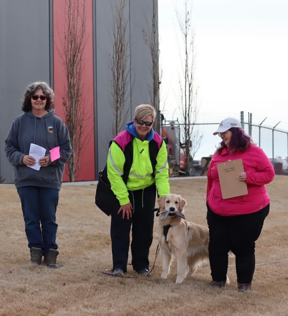 Yesterday we drove to Red Deer for Bond and I to do a mock UTD test to evaluate our skills. I was so proud of him. He started strong, taking in the odour of the unknown track layer and headed out nose down and on track. We made it to the first article, a block of wood, and then made a hard surface turn across the parking lot. He turned again and was pulled towards the building where the odour was pooling. We went by the final article that was about 20’ away on the grass. He ended up following the track layers walk out trail until in abruptly ended where she was picked up by a car. He then confidently worked his way back to the glove. I was overwhelmed with pride to see how hard he worked to solve the scent puzzle. For a 9 month old puppy he is always amazing me. He got to enjoy an ice cream cone with Brodie to celebrate his successful track. (Thanks to Donna Brinkworth for sharing these photos)