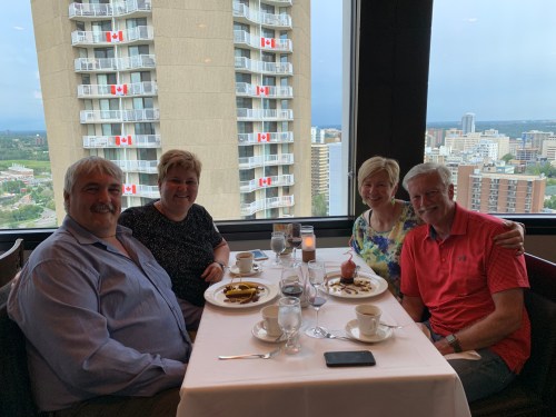 On Tuesday we met up with Chris and Michelle and had dinner at a lovely pub in Georgetown. Wednesday was spent visiting my family in Toronto and Thursday we were back in Brampton where Erin and Paul hosted us and Chris and Michelle for dinner. Our visit with family was too short but absolutely wonderful. Off to Nationals tomorrow.
