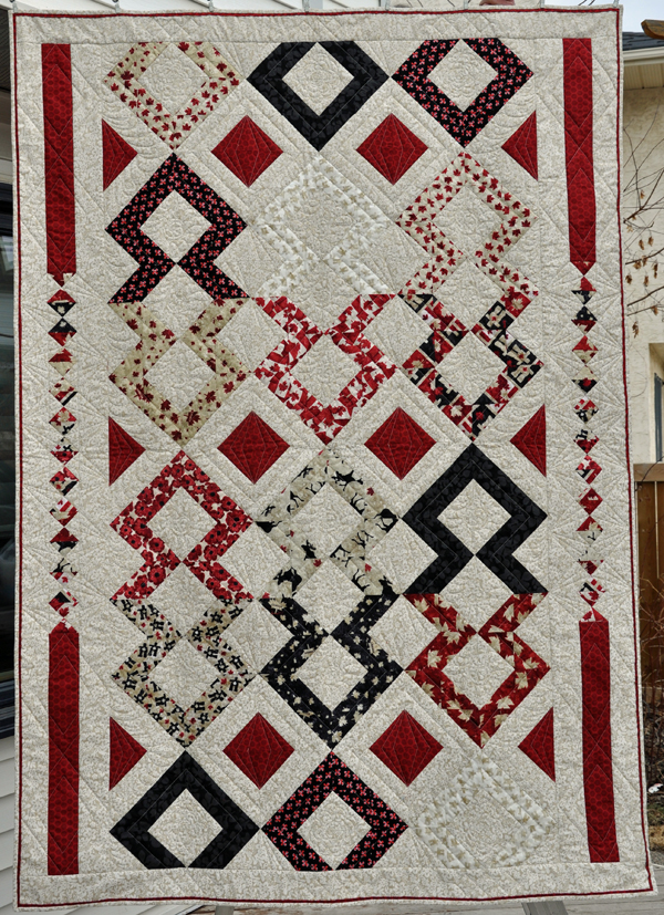 Back in the fall of 2014 I was very lucky and won a fat quarter bundle from Sew Sister’s Blogathon Canada. It was Northcott’s Stonehenge OH CANADA line. Last year I made this quilt and donated it to Quilts of Valour Canada.