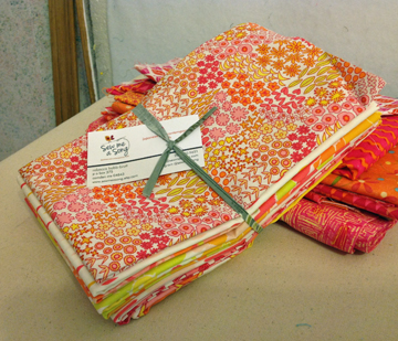 At the 2nd quarter FAL wrap up party I was lucky enough to win a $25 gift card from Becca at Sew me a Song. I used it to help purchase this 1/2 yard fabric bundle. I think these fabrics, plus a few more from my stash, will make a cute quilt for a little girl. I am using the same pattern as above and it will be donated to the Be Brave Ranch too.