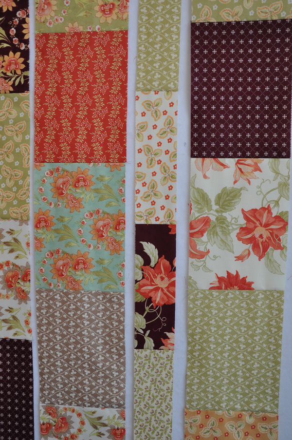 I placed all the blocks on my design wall to help me decide what order to place the colours.