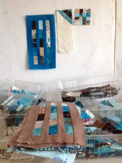 And last but not least I have started Leftovers V. I am using strips and small rectangles left over from my Blue Odyssey Quilt. I’m also planning on incorporating leftover blocks from Blue Odyssey and Leftovers III somewhere in the quilt.