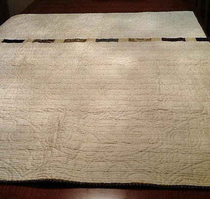 I wasn’t able to do any intricate free motion quilting because it would look good on the one side but the design would not match up with the quilt layout on the other side. I went with an all over design called Arrowhead.