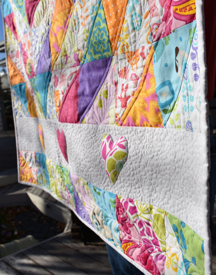I used trapunto to make the hearts pop and then did a dense quilting in the background to enhance their 3d effect even more.