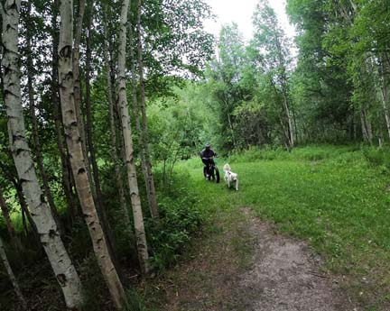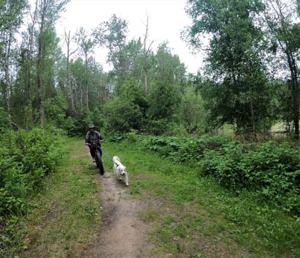 We had some fun this morning at Chickakoo. First time Brodie and I have tried bikejoring in the woods instead of on sidewalks in our neighborhood. I am struggling to get him to run in front, he always wants to be in heel position. Brodie did almost 4km and then Don Ho and I went and biked another very hilly 5km. Can’t wait to go again. Thank you Angela Stuber for you excellent guidance and the photos. It really helped having you and your dog in front for motivation.