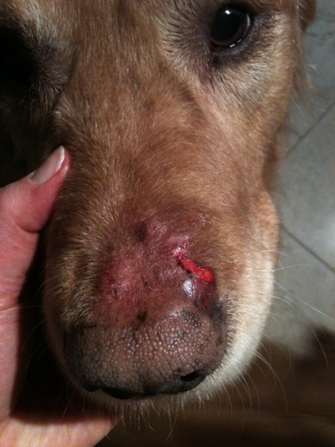 This morning I had to take Wally to the Vet because he had this weird, weeping, crusty, inflammation on the side of his muzzle. While we were waiting to see Dr. Scott they asked if I would be willing to allow Wally to participate in a study that the University of Calgary is doing. They are taking blood samples from pure bred dogs to study their longevity. My golden boy has been a regular blood donor for almost 10 years now so getting a blood sample from him would be easy. I mentioned that I had my other dogs with with me and offered their blood too.