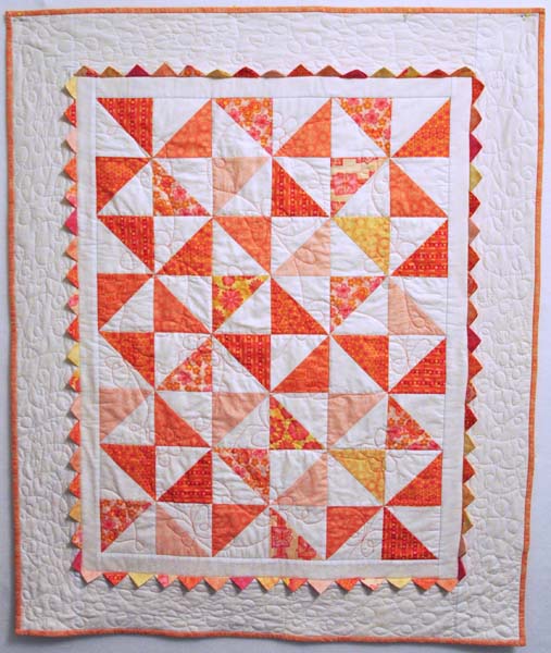 One of my staff members had a new baby girl in December 2009 so I made this very feminine quilt with prairie points. Although I had made many quilt tops before, this is first quilt I ever completed from start to finish including the machine quilting and binding. I sure learned a lot.