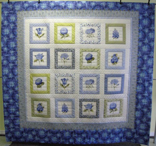 Back in the summer of 2009 I took an introduction to quilting class and I loved it. It was once a week for 6 or 8 weeks. I was so hooked after the first class that I started working on my own quilt at the same time that I was taking the class. It only took me two weeks to complete the top and then I didn’t know what to do with it. I didn’t know how to create a quilt sandwich, free motion quilt or even bind it. I took a few more classes to learn how to do all of these things but I was still afraid to tackle it myself in case I ruined it. Finally, in December of 2010 I found the Manquilter and gave him my quilt top to work his magic and complete it. I haven’t put the binding on yet but here is the almost finished product. I’m pretty happy with it. The only ‘kink’ in the works is that I had supplied wool to use for the batting but Matt completely forgot about it and used a 80/20 cotton batting. It looks good but I would have preferred the loft and light weight feeling of wool.