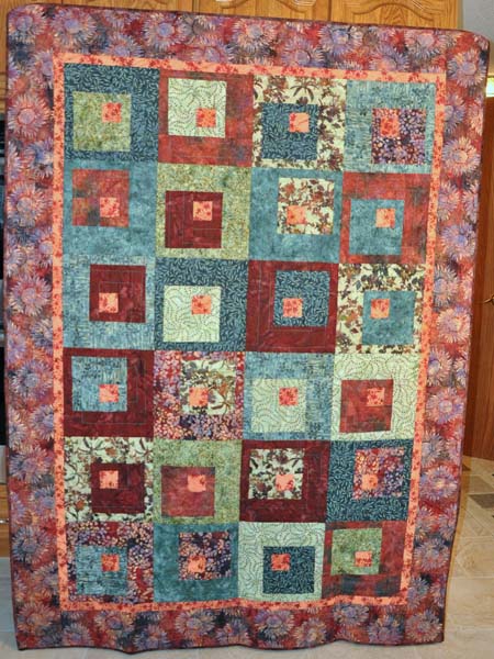 I have the most amazing Massage Therapist. Without Pat I don’t know how I would keep moving some days. For Christmas 2009, to thank her for all her amazing work, I made her this quilt. It is made with rich, vibrant colours that she loves. This was the second quilt that I finished.