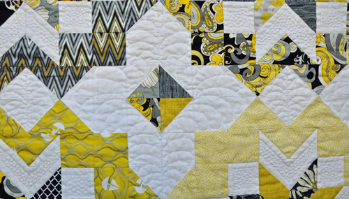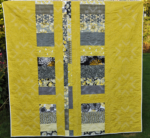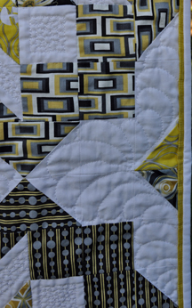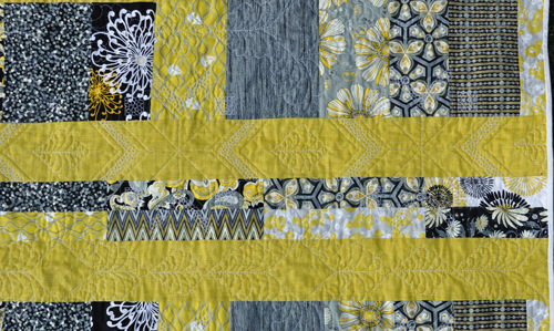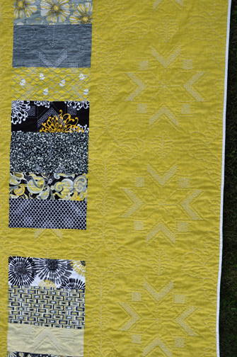 I think the back turned out really interesting and the quilting really shows up on the background fabric in between the printed ones: