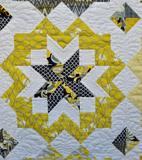 In July 2013 Melissa, at Happy Quilting, held a quilt-a-long (QAL) with her Star Surround Block. I had tried block of the month and finish-a-longs but I was new to the QAL experience. I have to say that I really enjoyed the process and seeing how different each person’s quilt turned out. Different fabric choices and differences in how people assembled each block led to an array of similar but unique quilts. The best part is that when the QAL ended I was left with a completely finished quilt rather than another quilt top to add to my growing pile of unfinished quilts.