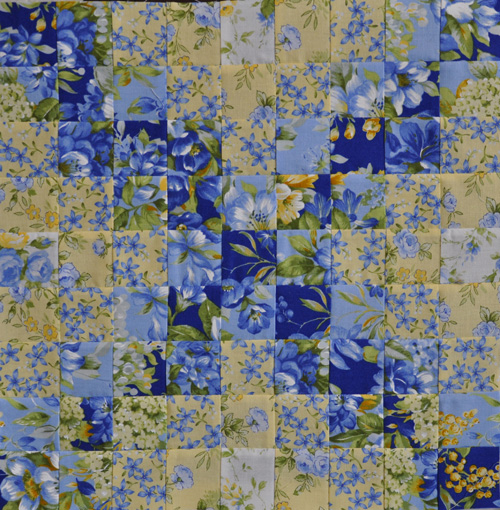 My pattern required 10 different prints/colours following a colour and value range.  It took me a while to gather all the fabric.  I even had to order some from Ontario and Texas.  The quilt has only 2 different blocks that are 13.5 inches finished.  It is made of 7 blocks per row and 9 rows with an overall finished size of 98.5  x 125.5.  Sue wanted it extra long so she could tuck it under and around her pillows.