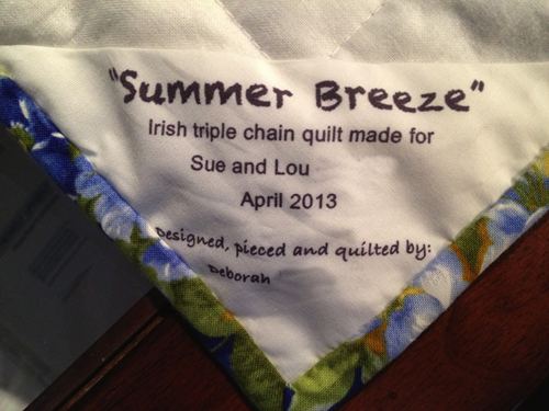 Another first for me on this quilt is adding a label.  Sue really wanted one so I made one.