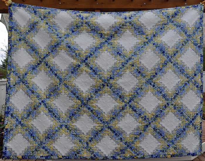 And here is the actual finished quilt:  Sue’s “Summer Breeze” Triple Irish chain: