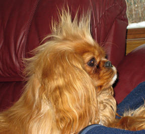 Our little girl is 3 today. I love having a small dog that I can pick up and smooch and Tilly is the perfect girl for the job. She is a real love muffin and she will spend hours in my lap snuggling and flirting. Thanks Chris for breeding such a wonderful Cavie!! I highly recommend the breed.