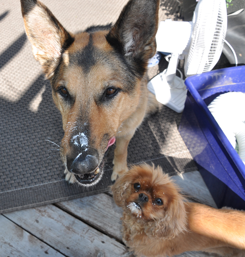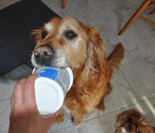 The ‘kids’ love licking the empty yogurt containers. I used to buy 500ml containers so they got to ‘clean’ one every 3 days. When I switched to the 1 litre containers they had to wait a whole week. They still join me in the kitchen every morning hoping that today is the day that the container is ready for their pre-wash cycle.