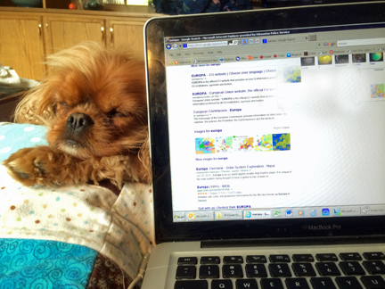 My little helper has to be on my lap no matter what I am doing. She likes to peak around the monitor just to make sure I see her and to make sure I am not eating anything that she thinks she should have.