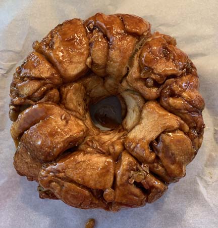 Today it was overnight fermented monkey bread. Fermenting the dough makes the nutrients more available to the body and easier to digest. The kitchen smelled amazing while it was baking. It wasn’t out of the oven for 5 seconds before we both tucked in. All I can say is OMG!!!!!!
