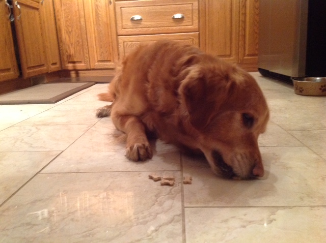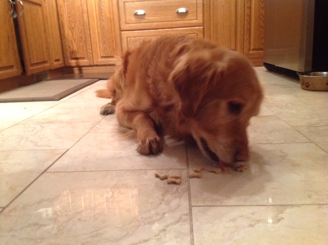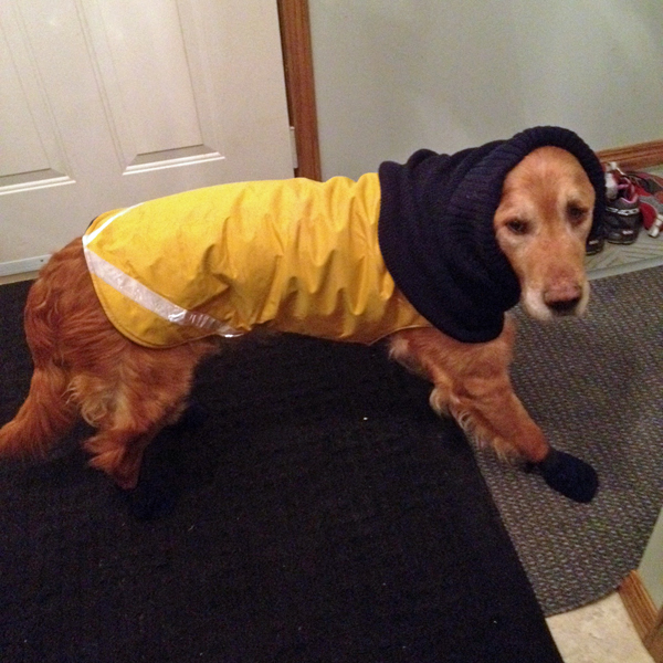 Last week we took Wally to the Vet because he was vomiting and had bloody diarrhea. He has a sensitive digestive system and he gets these tummy troubles every year or so. We were not panicked but at his advanced age (16 year and 10 months) we wanted to get things settled and resolved quickly. As we were waiting for our appointment we were shocked to see that one of his testicles had ballooned in size. It was not like that the previous day. It was 11.5 inches around and the size of a softball. We went from being mildly concern about diarrhea to being panicked about an extremely fast growing tumour.